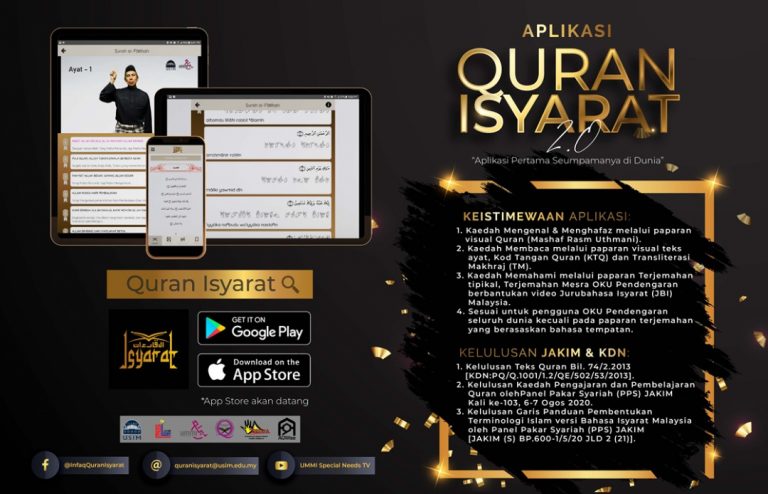 The Quran Isyarat application is the world’s first Quran application developed to celebrate the strengths and disabilities of Quran learning for the hearing impaired community.
